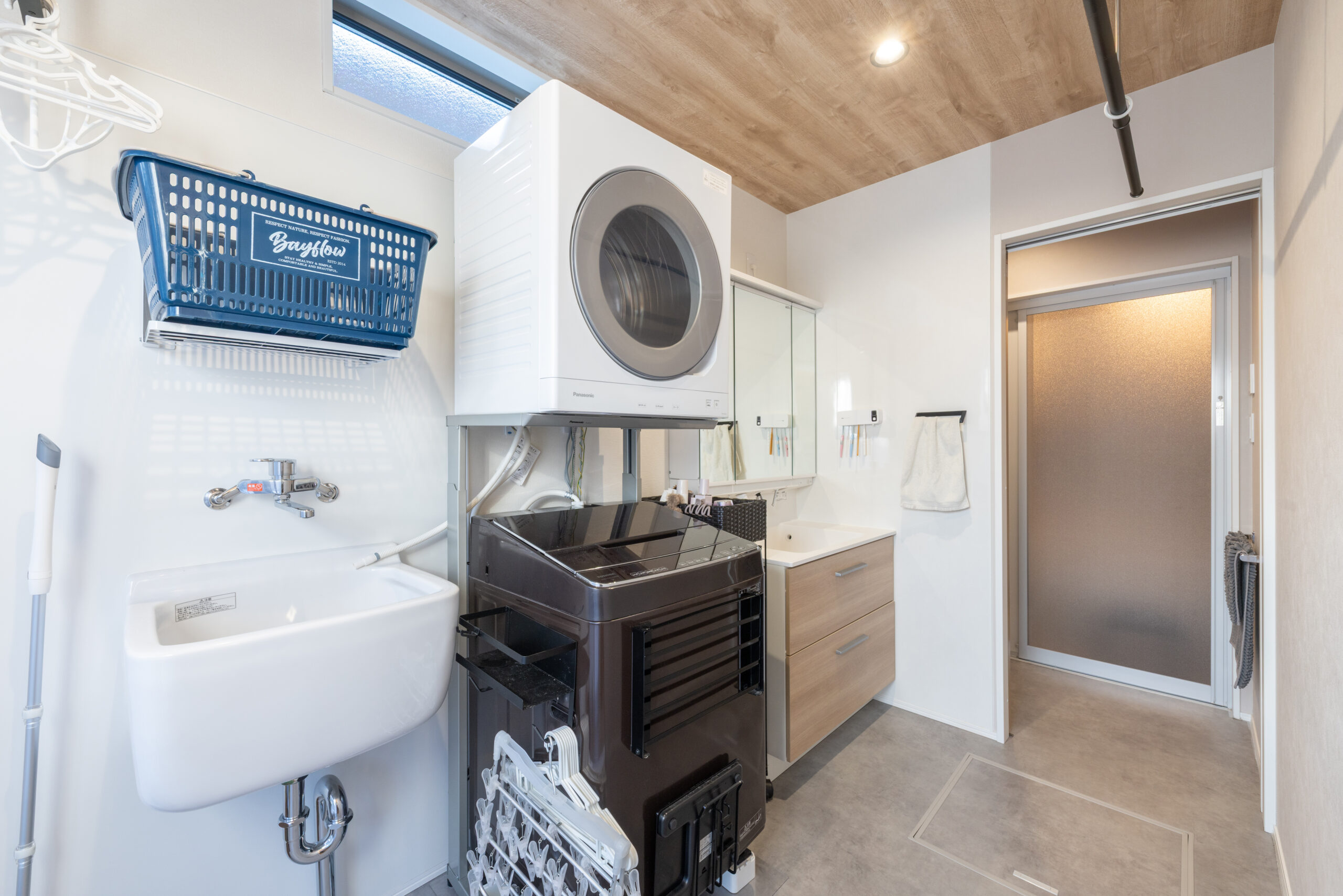 #ランドリー室 #ガス衣類乾燥機「乾太くん」 #リンナイ #スロップシンク #室内物干し #ホスクリーン #川口技研 #浴室 #照明 #クロス #床 #窓