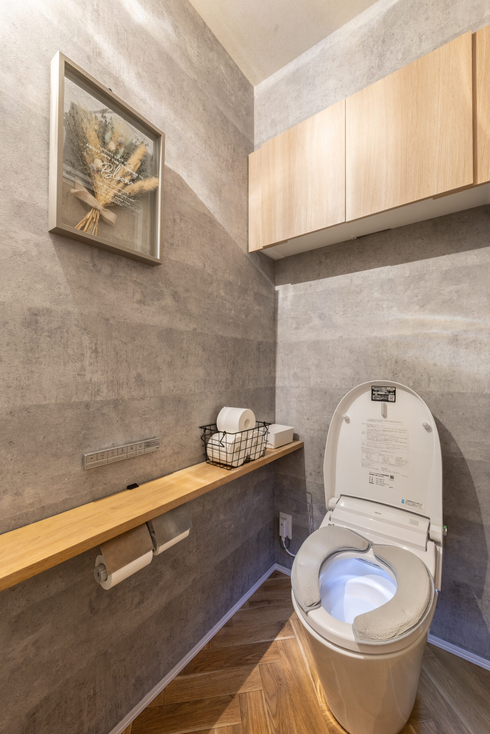 #トイレ #サティスS #LIXIL #カウンター #ペーパーホルダー #アッパーキャビネット #クッションフロア #クロス
