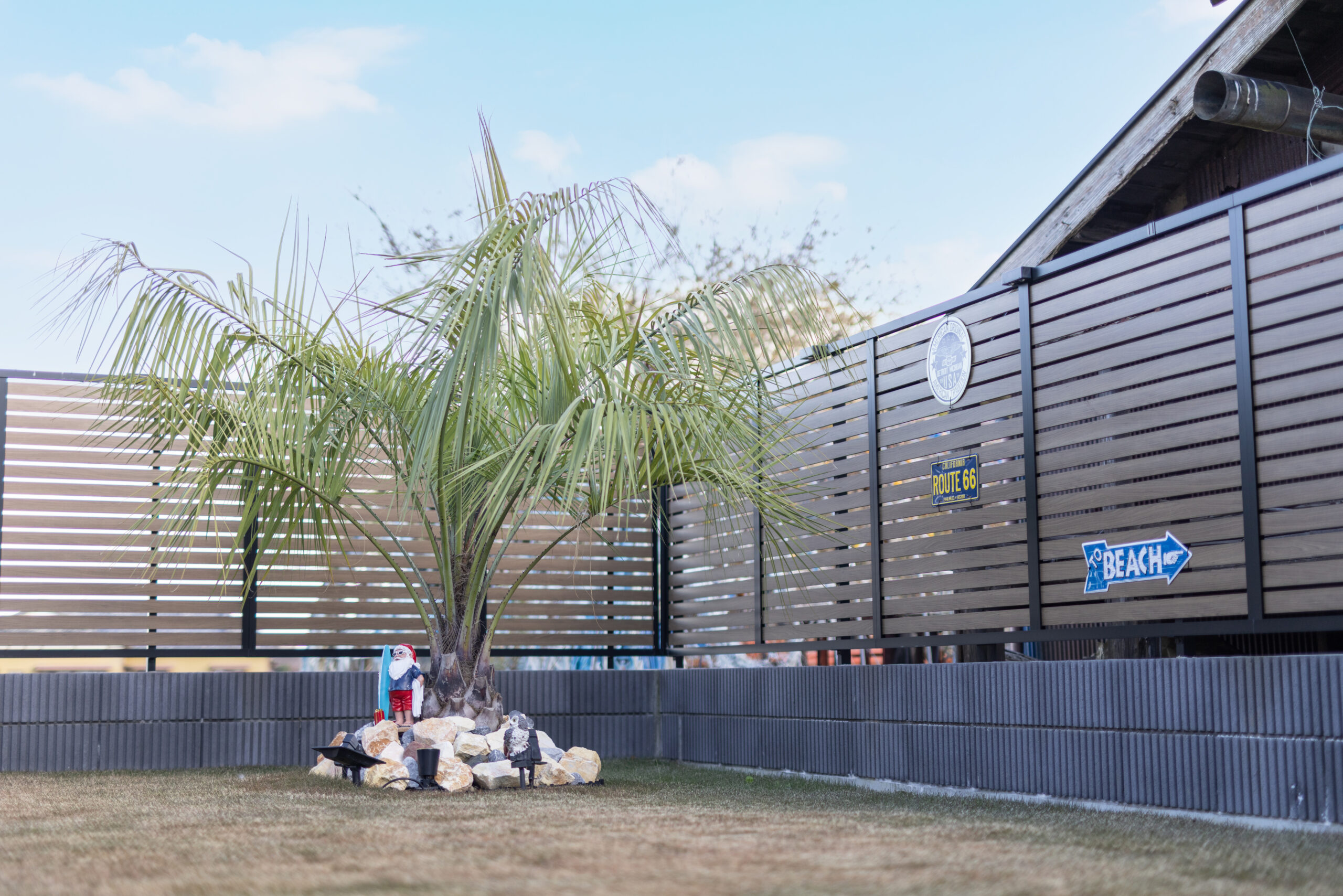#庭 #エクステリア #目隠しフェンス #ハワイアンリゾート風 #植栽 #ココスヤシ